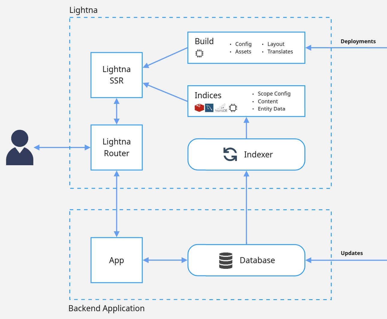 Lightna follows a frontend architecture that differs from the traditional model where SSR apps handle everything at runtime β including data fetching, heavy logic and constant overhead from universal frameworks. As projects grow, this approach tends to slow down and often leads to heavy caching β including full page caching with complex invalidation logic or outdated data on the site. This increases development complexity and limits flexibility and performance in the long term.